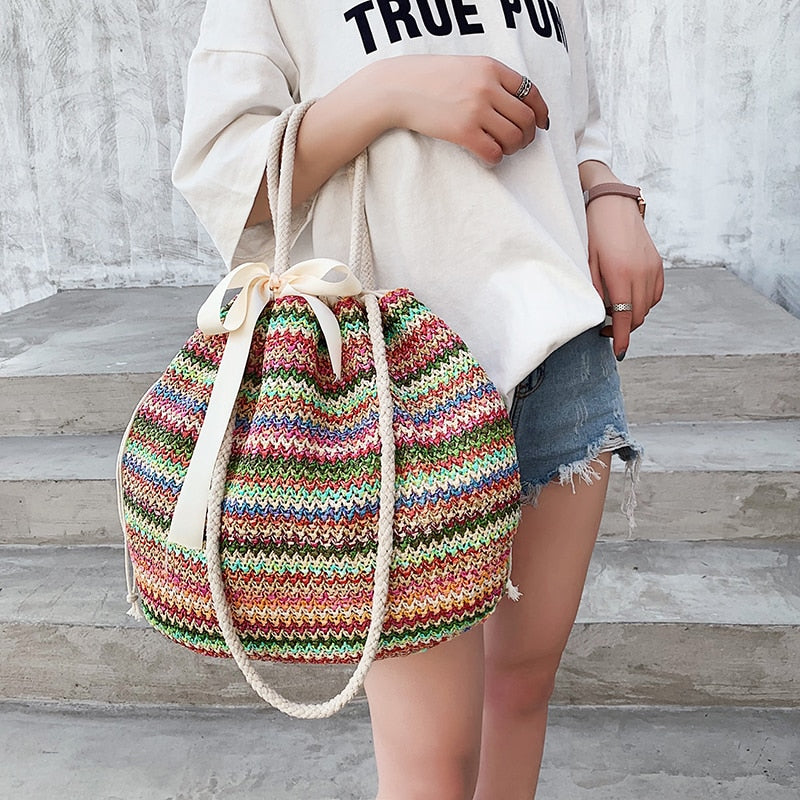 Matériel: paille tricotée à la main Sacs de grande capacité