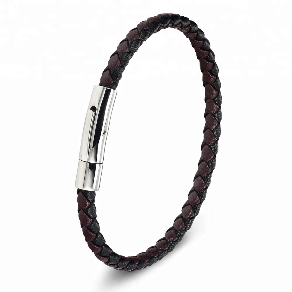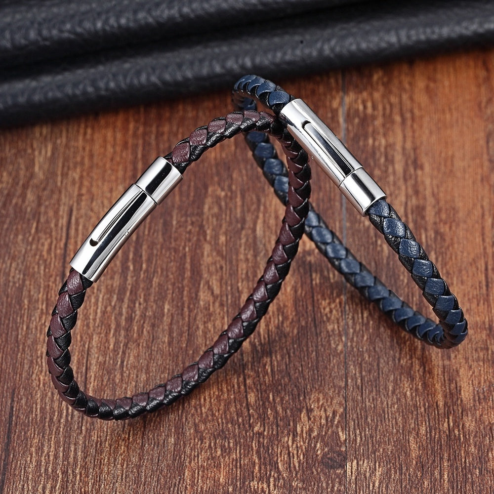 Bracelet à fermoir magnétique en acier inoxydable Hommes Femmes Tissé En Cuir Véritable Bracelets d’amitié Bracelets Personnalisé